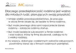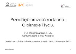 Dr Janusz Marszalec przedstawił perspektywę firm rodzinnych w prezentacji "Przedsiębiorczość rodzinna. O biznesie i życiu", zwracając uwagę m.in. na przewagi firm rodzinnych, trudności w prowadzeniu rodzinnego biznesu i jak sobie z nimi radzić, a także na powody, dla których przedsiębiorczość rodzinna jest ważna w planowaniu karier ludzi młodych.